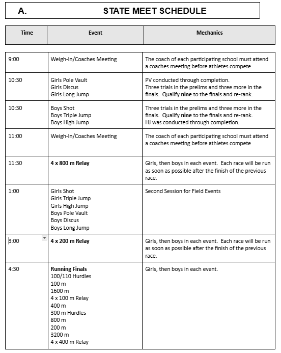 Meet will be set up to resemble state meet schedule.